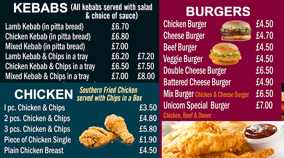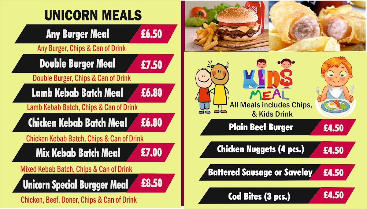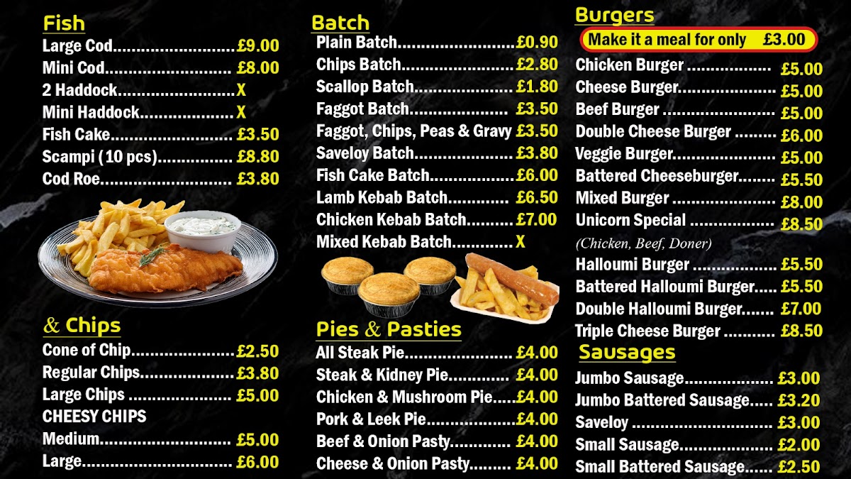 Unicorn Chippy Menu